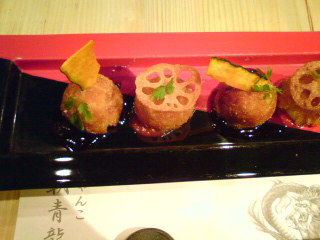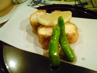 | たたみいわし入りのサラダ | 海老真丈湯葉包み揚 |